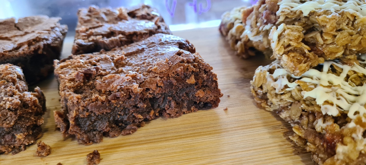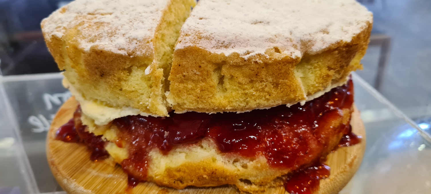 Enjoy a selection of freshly baked cakes like Lemon Drizzle or Ginger Crunch.